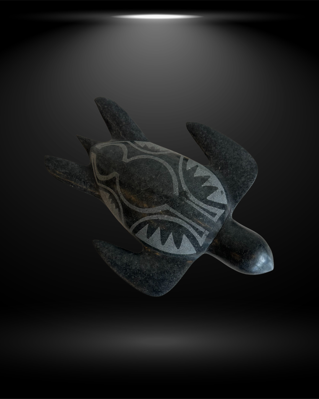At the center on the flat underside of the piece