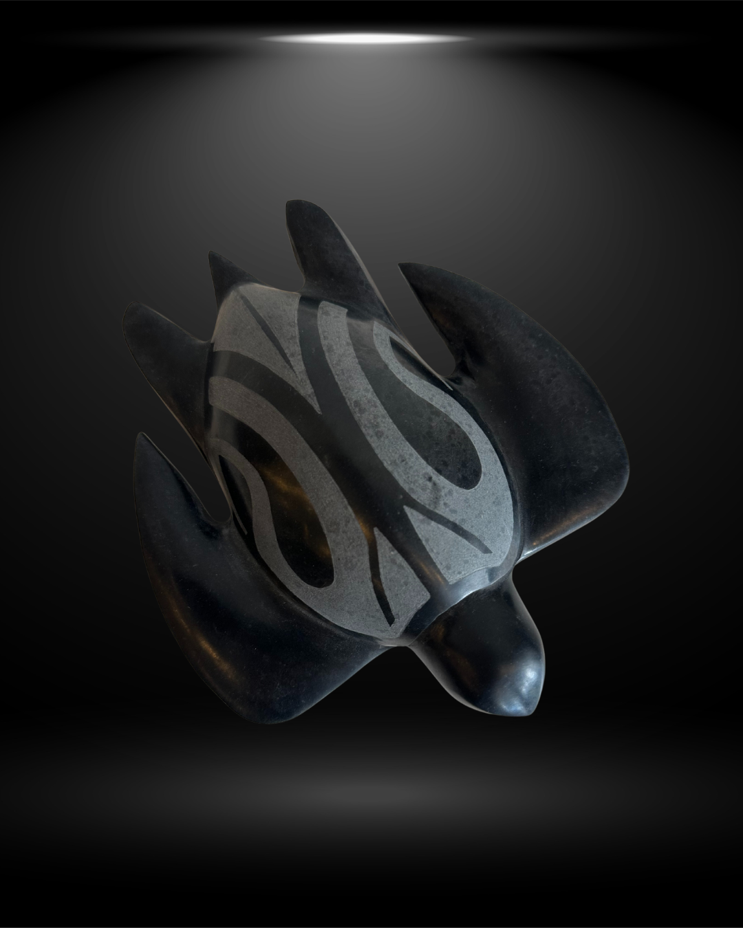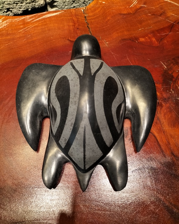 At the center on the flat underside of the piece.